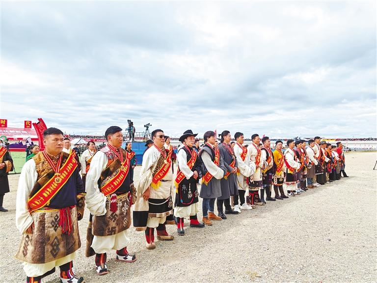 賽馬節期間,那曲市委、市政府對第二屆“鄉村振興 那曲奮進”活動市級決賽獲獎群眾代表進行隆重表彰。賽馬場內,男女老幼手捧哈達排起長隊,以草原人最熱烈喜慶的方式崇敬心中的“英雄”、歡送身邊的杰出勞動者。