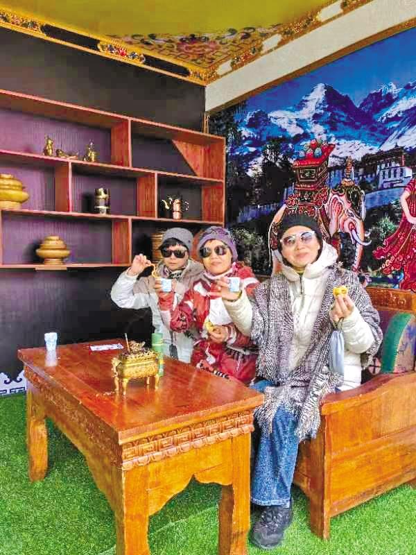 游客在“次仁的家藏式體驗館”區域拍照打卡集章。