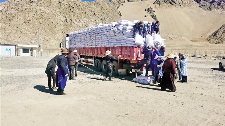 圖為曲水縣才納鄉發放有機肥。本報記者 格桑倫珠 攝