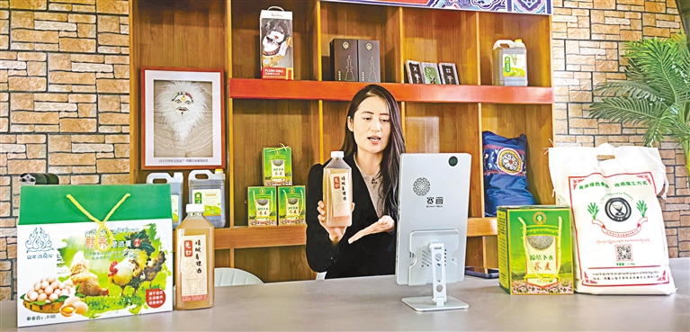 圖為瓊結縣網絡主播直播帶貨瓊結縣農特產品。記者 汪純 攝
