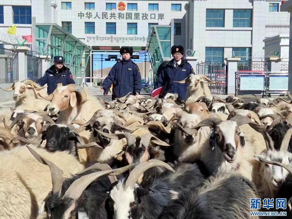 日喀則海關關員監管活羊出口。(受訪者供圖)