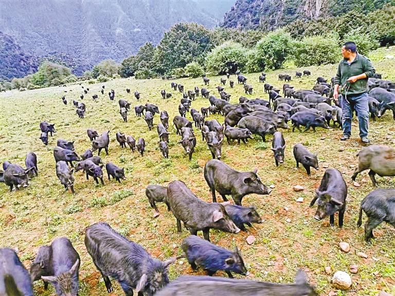 圖為鄉源藏香豬養殖農民專業合作社養殖的藏香豬。記者 胡文 攝