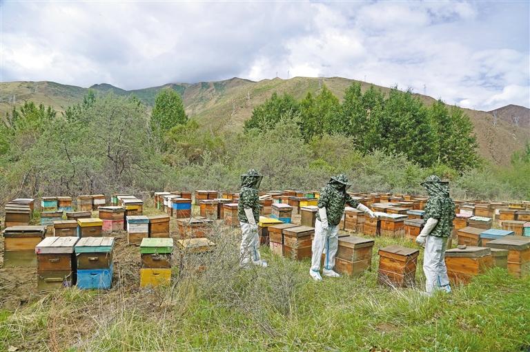 為大力發展養殖業、培養致富帶頭人,今年以來,拉薩市墨竹工卡縣扎西崗鄉朗杰林村依托農業基礎、人工種植油菜花資源豐富等優勢,建立養蜂基地,為鄉村振興注入新動力。自6月初投入運營以來,養蜂基地蜂蜜產量達6000多斤,預計年收益5萬元以上。