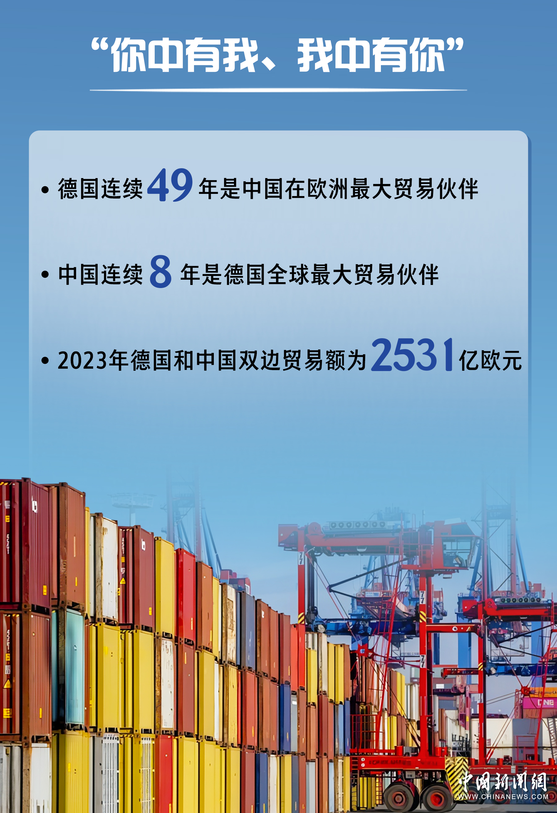 根據德國聯邦統計局數據,2023年德國和中國雙邊貿易額為2531億歐元,中國已連續8年成為德國全球最大貿易伙伴。德國連續49年是中國在歐洲最大貿易伙伴。