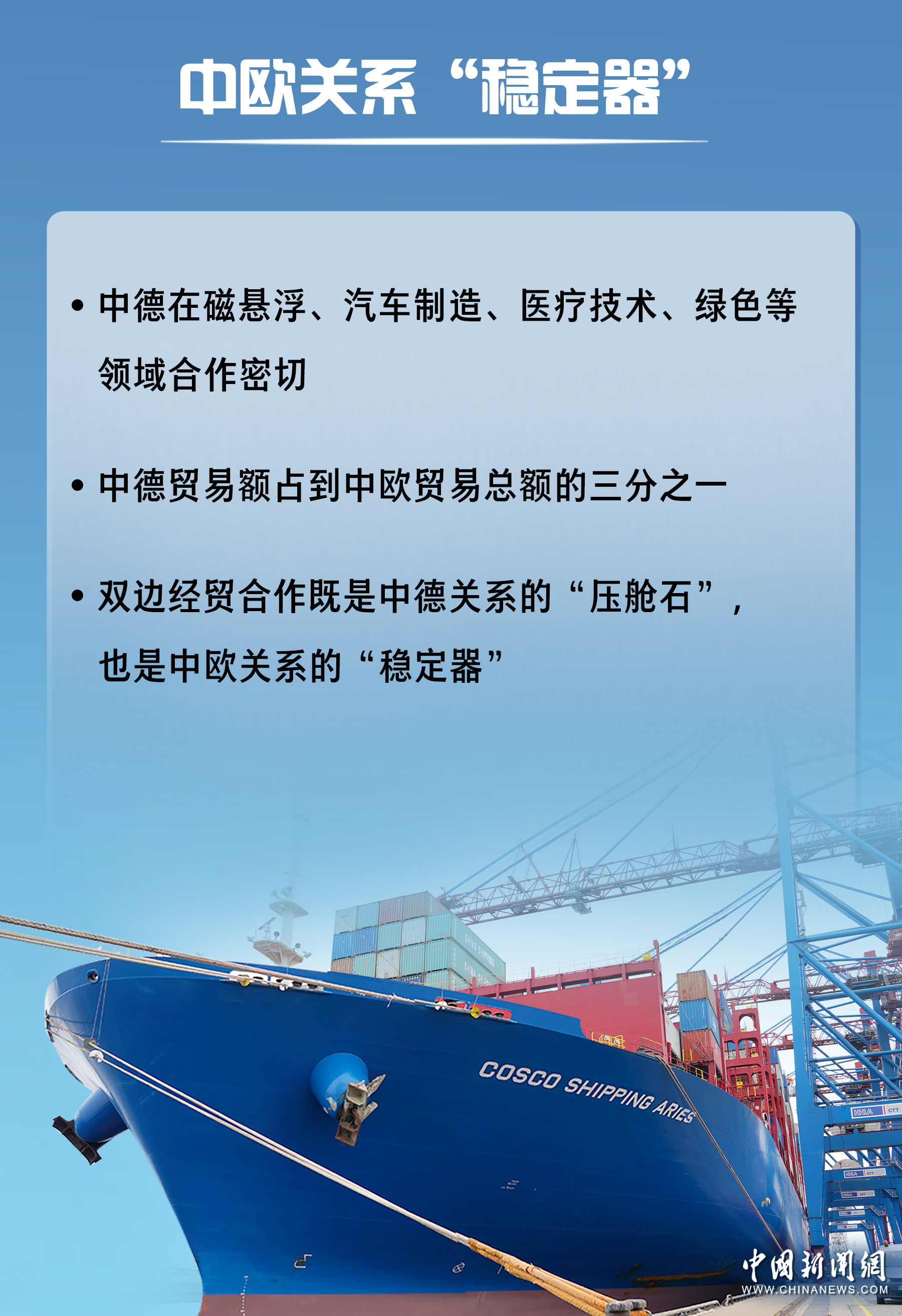 當前,中德貿易額占到中歐貿易總額的三分之一,德國對華投資占到歐盟對華投資的三分之一,雙邊經貿合作既是中德關系的“壓艙石”,也是中歐關系的“穩定器”。