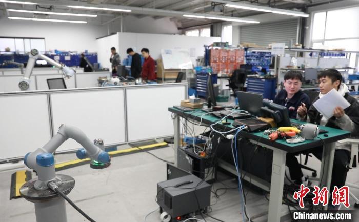 人工智能讓中國制造業從“追趕者”變身“領跑者”。圖為中科新松的工作人員正在對機器手臂進行位置標定。 張亨偉 攝