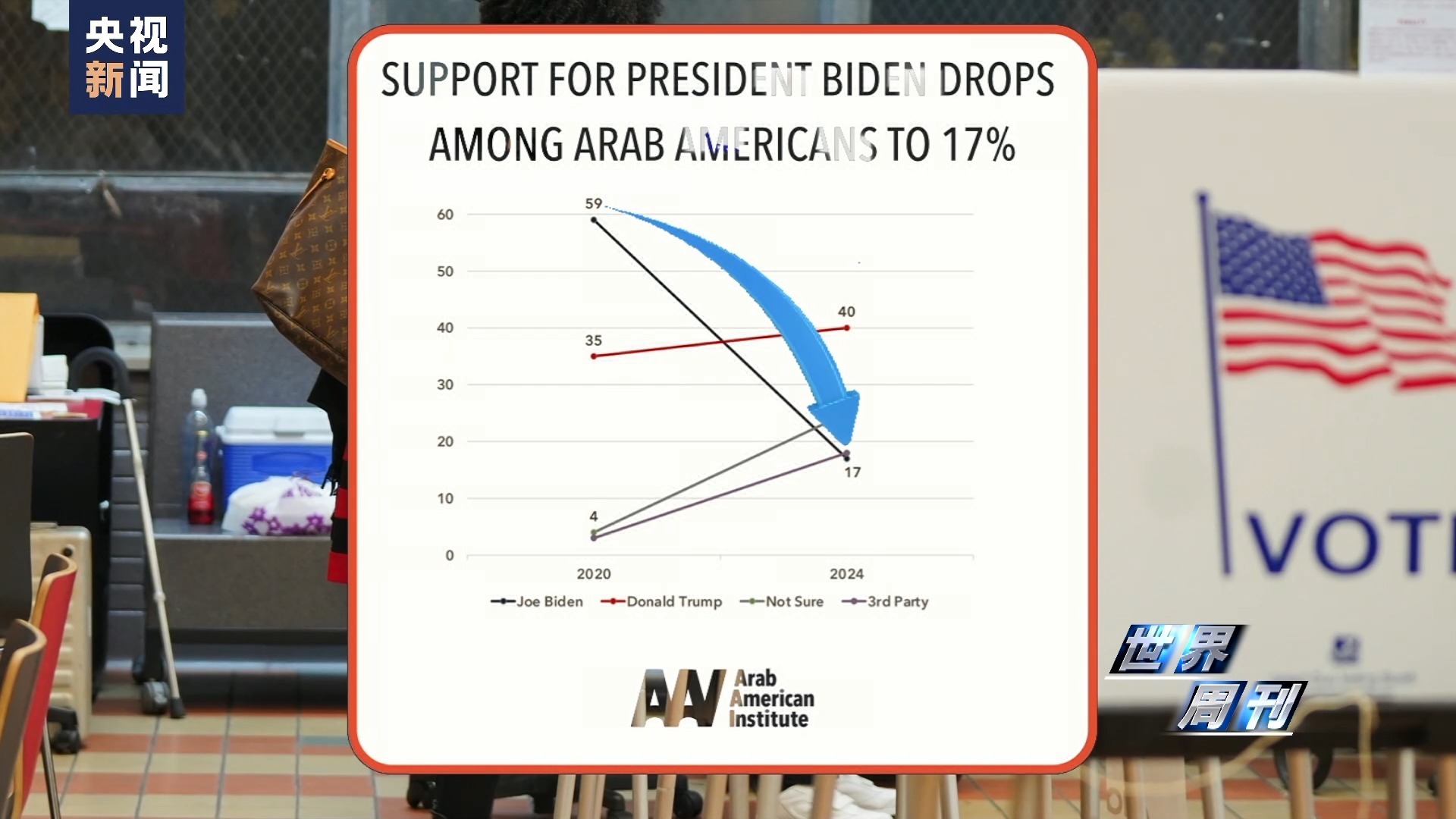 “阿拉伯裔美國人研究所”的數據也顯示,新一輪巴以沖突爆發后,拜登在阿拉伯裔選民中的支持率已由2020年的59%暴跌至17%。