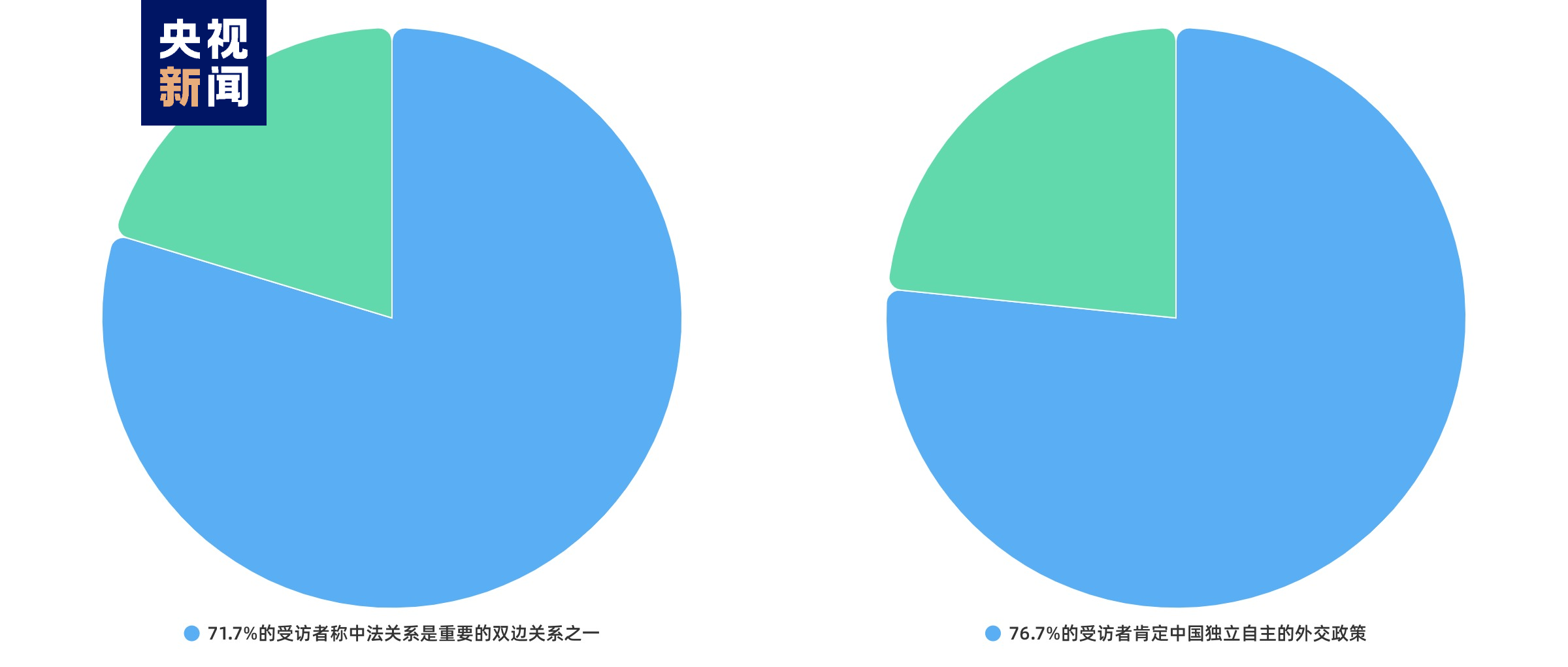調(diào)查中,71.7%的受訪者認(rèn)為中法關(guān)系是全球重要的雙邊關(guān)系之一;61.6%的受訪者對中法關(guān)系未來的發(fā)展表示樂觀,期待雙方進(jìn)一步加強(qiáng)在經(jīng)貿(mào)、科技等領(lǐng)域的合作;65.1%的受訪者認(rèn)為,中法在國際事務(wù)上的密切合作有利于促進(jìn)世界和平與發(fā)展。