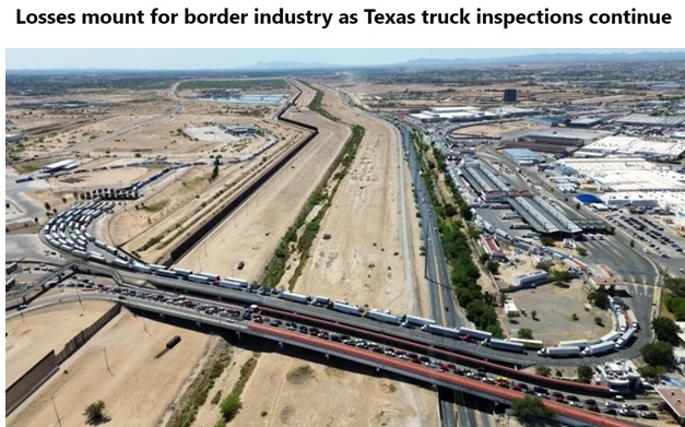 近日,為應(yīng)對近期大規(guī)模移民潮,美國得克薩斯州政府在美墨邊境重新設(shè)置了隨機(jī)檢查站,宣布對進(jìn)入美國的貨運(yùn)卡車進(jìn)行額外安全檢查,造成卡車嚴(yán)重?fù)矶隆?/p>