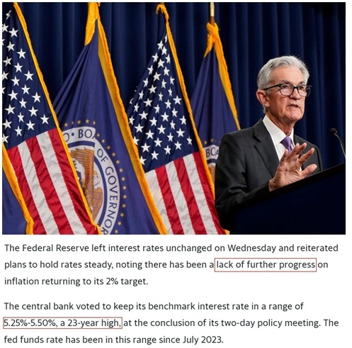 這也是自去年9月以來,美聯儲連續第六次決定將利率保持在23年來的高位不變。