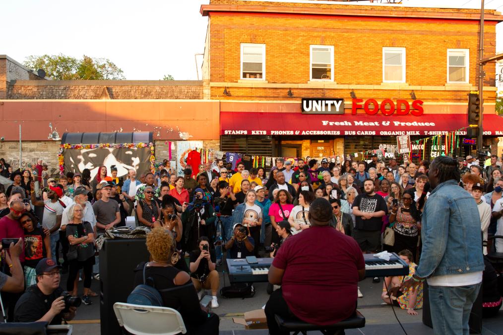 2023年5月25日,在美國明尼蘇達州明尼阿波利斯市,人們參加哀悼活動,紀念弗洛伊德遇害三周年。2020年5月25日,“無法呼吸”的非洲裔男子喬治·弗洛伊德死于白人警察膝下,成為美國人權史上的恥辱一頁。新華社發(比利·布里格斯攝)