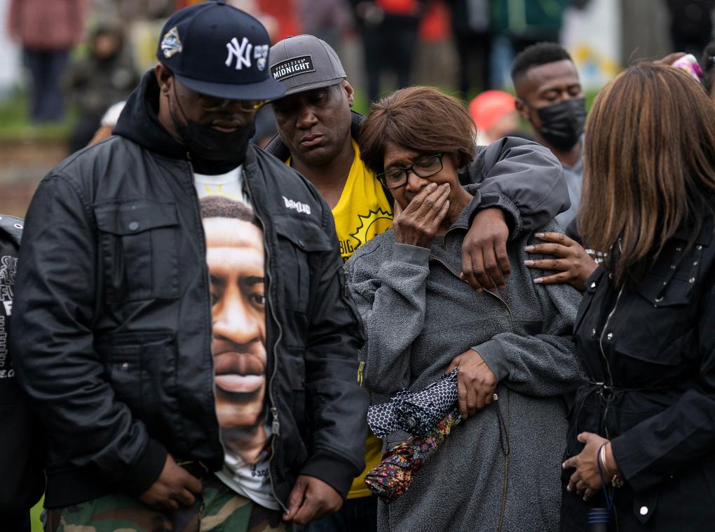 2022年5月25日,在美國明尼蘇達州明尼阿波利斯市,弗洛伊德的家人參加哀悼活動,紀念弗洛伊德遇害兩周年。新華社發(本·布魯爾攝)