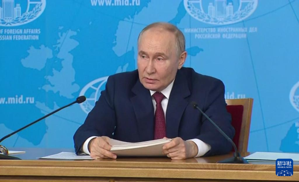 6月14日,在俄羅斯首都莫斯科,俄羅斯總統普京在俄外交部發表講話(視頻截圖)。新華社發