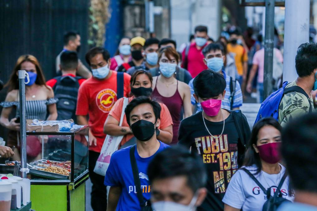 2022年1月17日,在菲律賓奎松城,人們走向公交車站。新華社發(烏馬利攝)