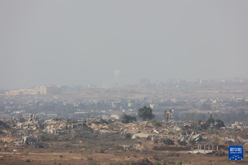 這是6月23日在以色列與加沙邊境以方一側拍攝的加沙地帶遭破壞的景象。新華社發(吉爾·科恩·馬根 攝)