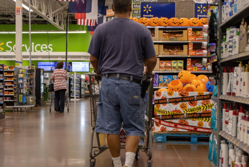 2022年8月31日,在美國得克薩斯州普萊諾市,一名男子隨身攜帶槍支逛超市。新華社發(金新攝)