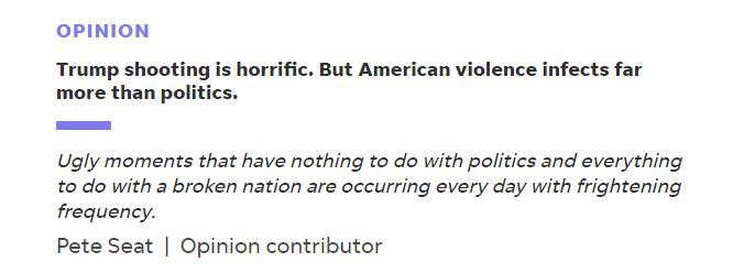 美國前白宮發言人、政治評論員皮特·西特(Pete Seat)日前在《今日美國報》(USA Today)網站刊文稱,特朗普在賓夕法尼亞州競選集會上遭“未遂刺殺”之后,盡管美國的政界人士、評論家還有普通民眾都在說這起事件是美國“破碎政治的一個跡象”,但這其實是“一個支離破碎的國家所體現出來的癥狀”。