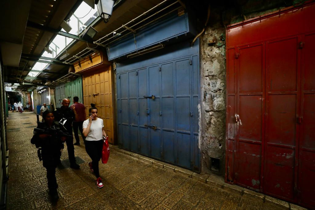 7月31日,在耶路撒冷老城,行人經過關門的店鋪。當日,耶路撒冷老城商戶舉行罷市,抗議哈馬斯領導人伊斯梅爾·哈尼亞遇襲身亡。新華社發(賈馬爾·阿瓦德攝)