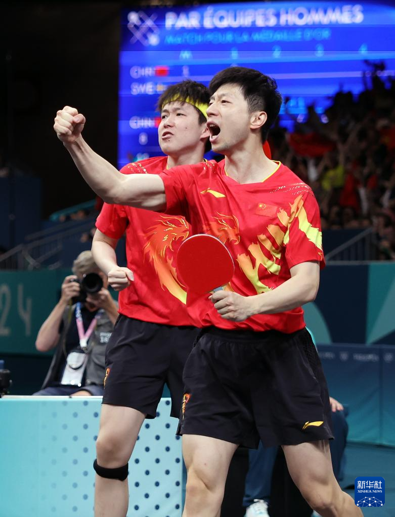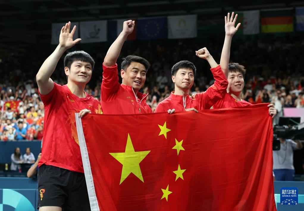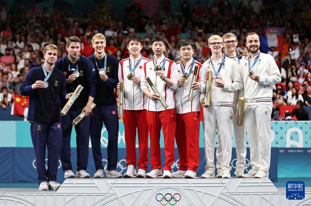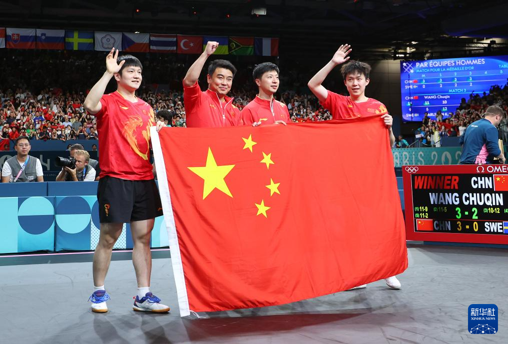 當日,在巴黎奧運會乒乓球男團金牌賽中,中國隊戰勝瑞典隊,獲得冠軍。
