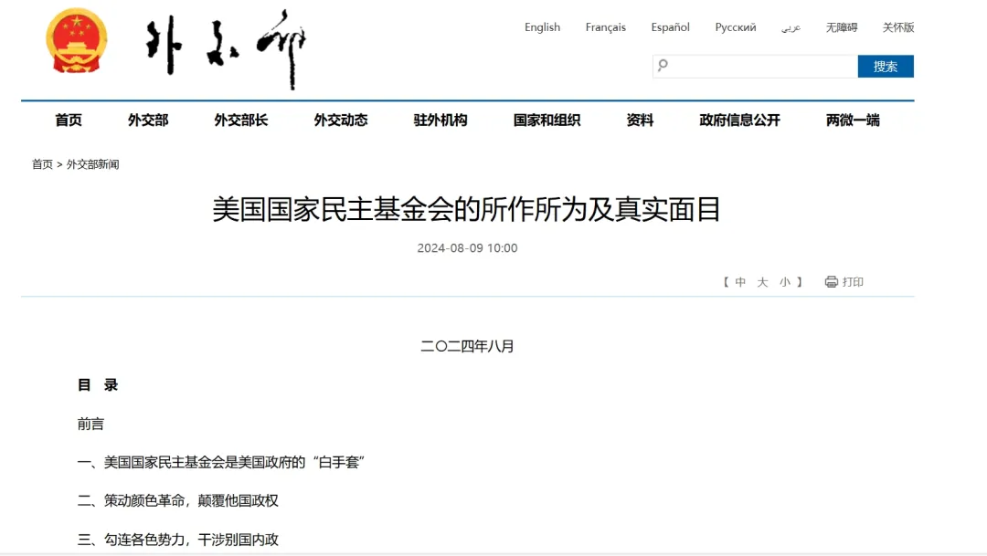 8月9日,中國外交部網站發布一份重磅報告:《美國國家民主基金會的所作所為及真實面目》。