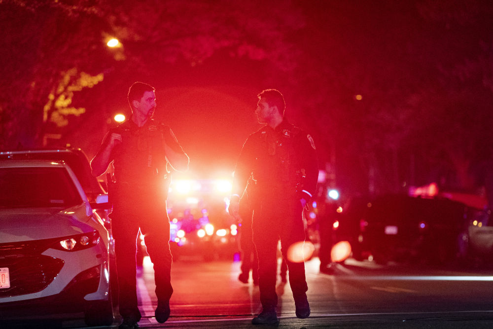 2022年4月22日,警察在美國首都華盛頓西北部一處街區發生的槍擊事件現場工作。新華社記者劉杰攝