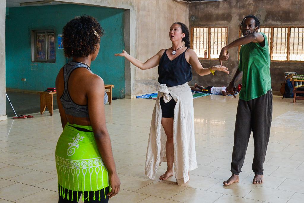 為了讓沒有任何專業(yè)基礎(chǔ)的喀麥隆學(xué)生們理解現(xiàn)代舞,娜爾斯和蔣可鈺還想到用中國(guó)太極和源于印度的瑜伽,向?qū)W員們講解太極圓弧運(yùn)動(dòng)和道家哲學(xué)思想,讓學(xué)生們領(lǐng)會(huì)中國(guó)太極和東方文化的思想內(nèi)涵,催化了中非古老文化的融合。