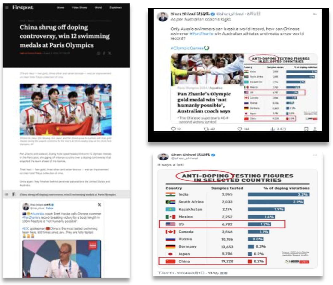 除了用及時的新聞消息擺出事實,總臺各評論欄目節目鏗鏘發聲,深度起底美炒作興奮劑問題的真實動機。“國際銳評”發布評論文章《美方必須就大規模使用興奮劑問題給世界一個交代》,強調奧林匹克精神不能被“美式霸權”玷污,反興奮劑工作不應淪為抹黑和打壓他國的工具;CGTN評論專欄《對話》《視點》《今日》等迅速反應,邀請多位中外業內人士深度訪談,犀利剖析美國惡意污蔑中國運動員背后的險惡用心;玉淵譚天譚主檢索分析美西方媒體今年以來的相關報道數據,給國際檢測機構(ITA)發送郵件獲取獨家回應,并且提取過去二十余年美國濫用興奮劑事件中的相關信息,還原美西方抹黑中國游泳隊的傳播鏈。