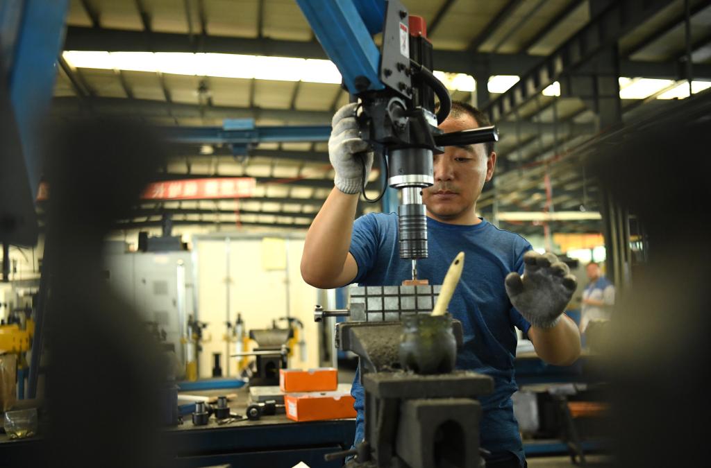 2024年7月30日,在長春吉林通用機械(集團)有限責任公司模具裝配生產(chǎn)線,鉗工在進行攻絲操作。近年來,吉林通用機械(集團)有限責任公司通過數(shù)字化改造、智能化升級提高生產(chǎn)效率,提升產(chǎn)業(yè)競爭力,已成為全球鋁加工汽車輕量化零部件知名供應商,為奧迪、大眾、寶馬、奔馳、保時捷等多家品牌主機廠供應零件。新華社記者柳文惠攝