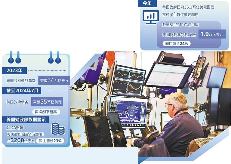 20世紀80年代以來,美債規模急劇上漲。1990年美國政府債務總額約為3.2萬億美元,2000年這一數字增長至約5.62萬億美元,2010年增至約13.56萬億美元,2020年增至約27.74萬億美元,2023年美國政府債務總額突破34萬億美元。截至2024年7月,美國政府債務突破35萬億美元,再次創下新高。雖然美聯儲降息能夠緩解部分償債壓力,但美債規模擴張勢頭恐怕難以控制,將成為籠罩在全球經濟上空的陰影。