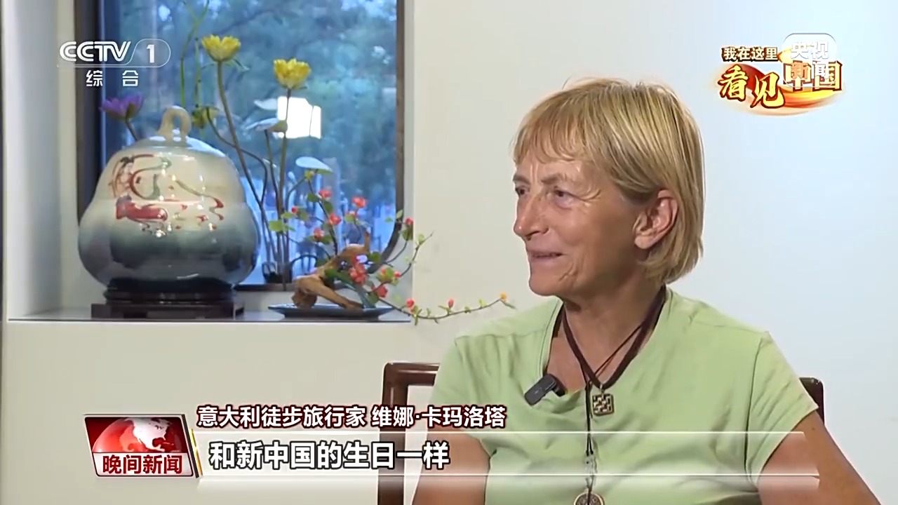意大利徒步旅行家 維娜·卡瑪洛塔:和新中國的生日一樣,我感到非常榮幸和快樂,我希望和你們一起再過一個生日,祝愿所有的中國朋友都能快樂。