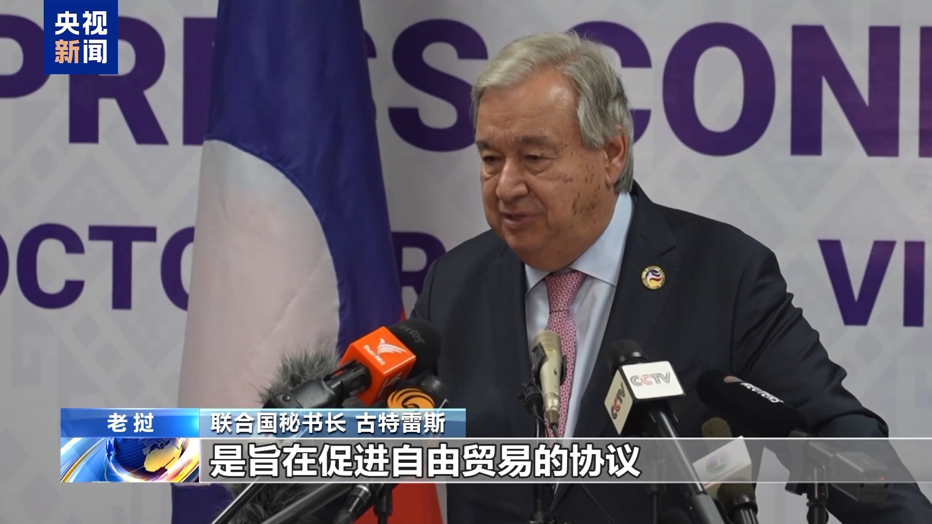 聯合國秘書長 古特雷斯:聯合國始終致力于首先確保全球經濟的完整性,遵循統一的規則,使用同一個全球網絡,我們必須不惜一切代價避免分裂。那么,是什么將各國團結在這個全球經濟中呢?是旨在促進自由貿易的協議以及為經濟增長創造條件的協議,從聯合國的角度看,我們非常歡迎這項協議。