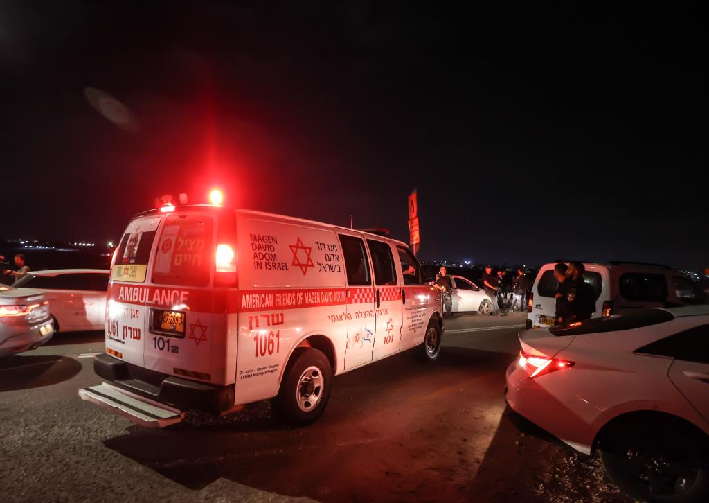 10月13日,在以色列北部賓亞米納,一輛救護車抵達遇襲軍事基地。新華社/基尼圖片社