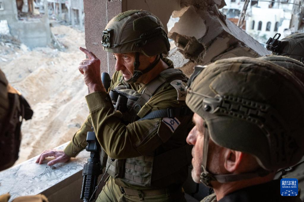 10月17日,以色列國防軍總參謀長哈萊維(中)在加沙地帶辛瓦爾死亡地點附近視察。新華社發(以色列國防軍供圖)