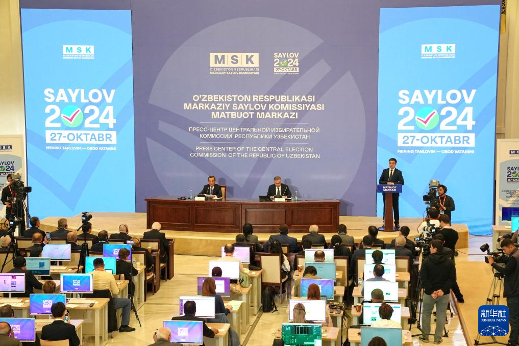 10月28日,烏茲別克斯坦中央選舉委員會在首都塔什干舉行新聞發布會。新華社發(扎法爾攝)