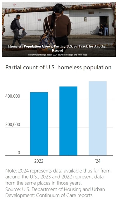 日前,美國《華爾街日報》對全美超過250個覆蓋城市和農村地區的無家可歸者服務組織的數據進行分析后發現,上述地區無家可歸者的數量較去年同期增加了約10%。這一趨勢表明,美國今年無家可歸者人數可能會超過2023年估計的65.3萬人,這是自2007年有記錄以來的最高數字。
