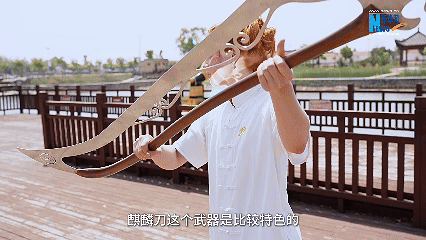 麒麟刀是傳統器械的一種,屬于長兵器,全套動作以劈、砍、斬、撩、掛、挑、勻、掃為主。在可欣的眼中,麒麟刀很大也很重,但動作有氣勢,在習練過程中體會到了中華傳統武術的精神和魅力。