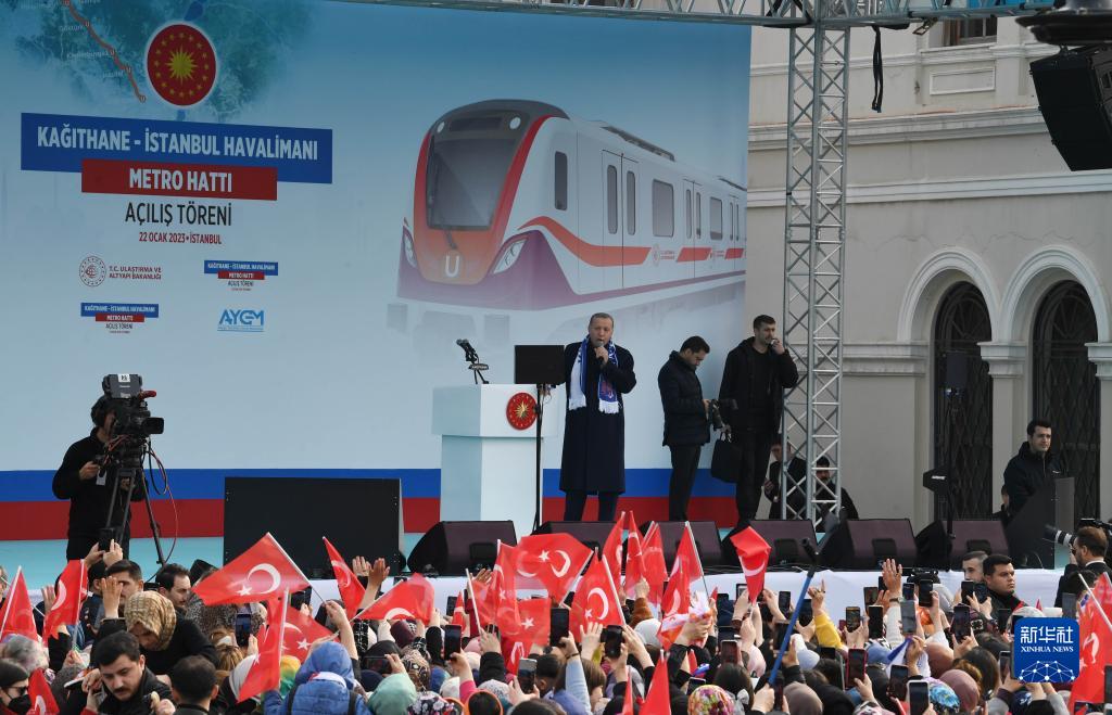 2023年1月22日,土耳其總統埃爾多安出席伊斯坦布爾新機場線開通儀式。(圖源:新華社)