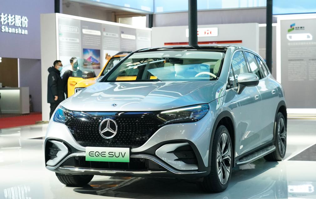 2023年11月30日在北京舉辦的首屆中國(guó)國(guó)際供應(yīng)鏈促進(jìn)博覽會(huì)智能汽車(chē)鏈展區(qū)拍攝的奔馳EQE SUV。新華社記者任超攝