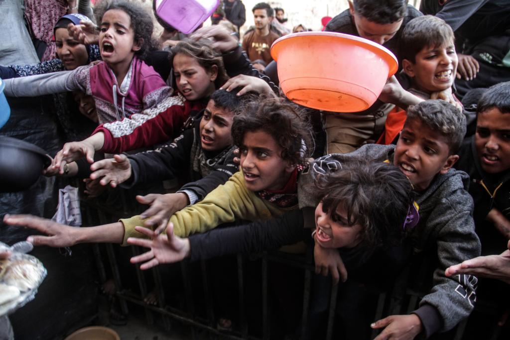 12月23日,巴勒斯坦兒童在加沙城領取食物。新華社發(馬哈茂德·扎基攝)