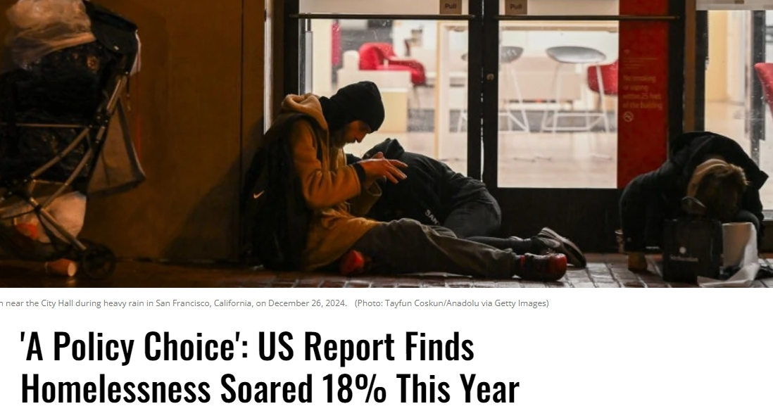 美國住房和城市發展部(HUD)本月27日發布報告稱,美國聯邦無家可歸者追蹤系統記錄到的無家可歸者數量已超過77萬,與去年同期相比驟增了18.1%,也是自2007年開始此項統計以來的最大增幅。對此,美國《共同夢想》網站(Common Dreams)報道指出,這完全是“政策選擇”,后果可以預見。