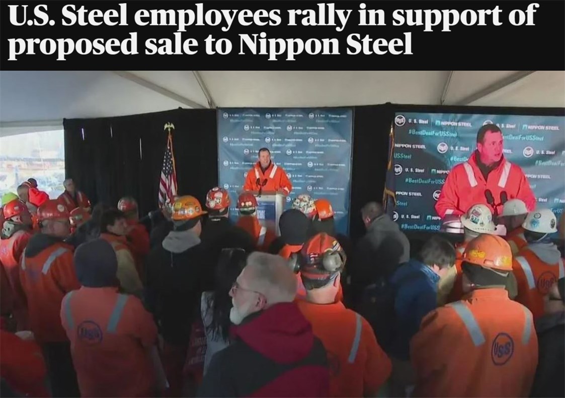 △美國哥倫比亞廣播公司網站:2024年12月12日,美鋼管理層和員工在位于賓夕法尼亞州的克萊頓工廠舉行集會,支持這樁收購交易。