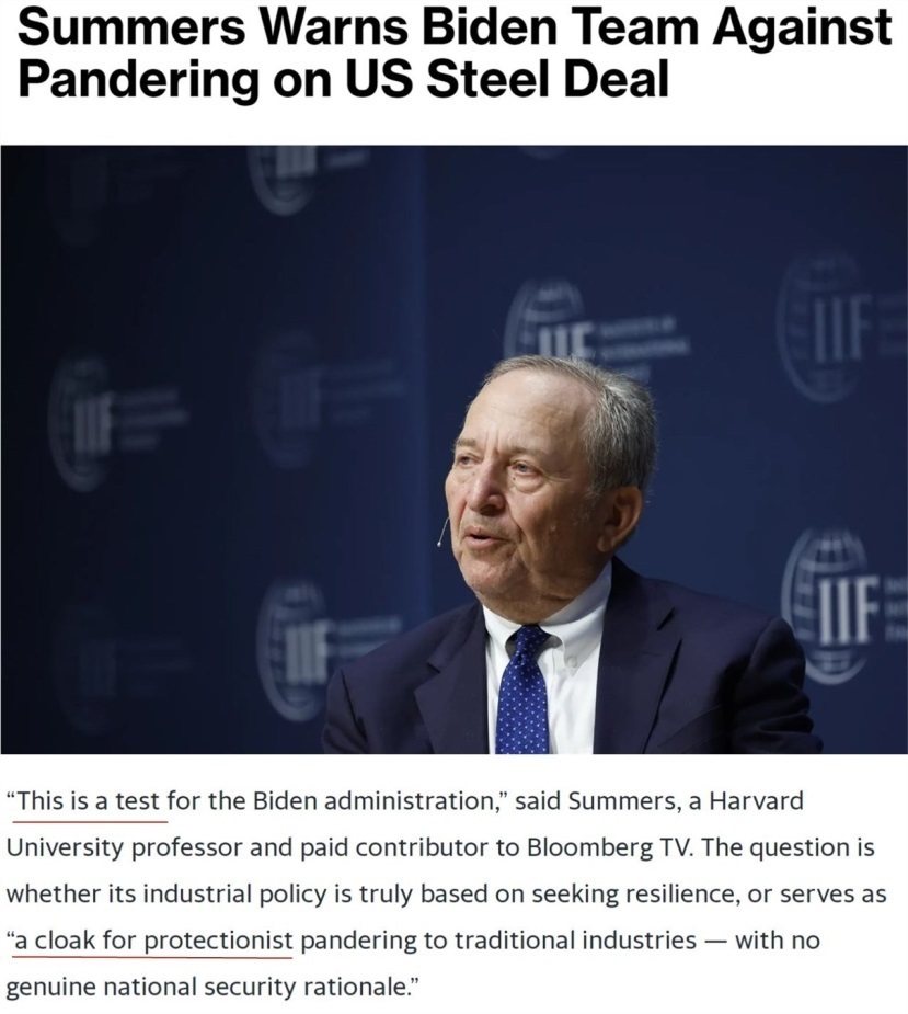 早在去年收購案推進過程中,美國前財政部長勞倫斯·薩默斯就曾表態認為,日鐵收購美鋼并不會構成“國家安全風險”。