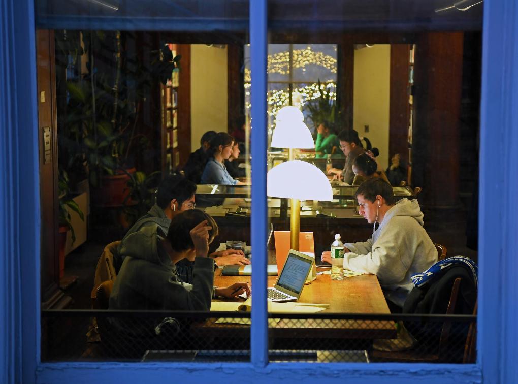 2019年12月7日,在美國紐約,哥倫比亞大學學生在圖書館自習。新華社記者李睿攝