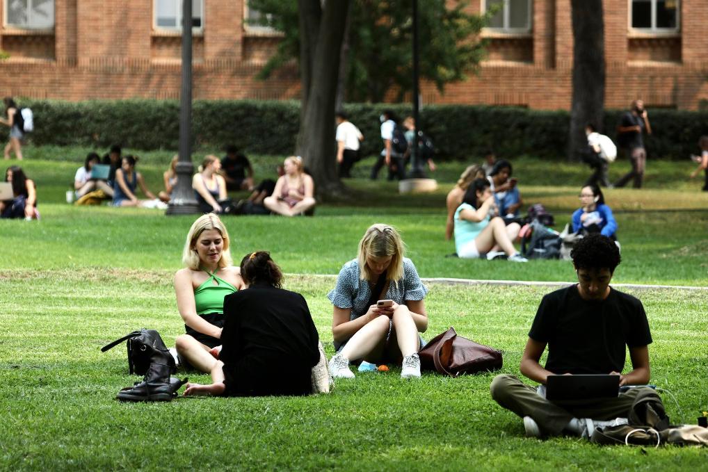 這是2021年9月23日在美國加州大學洛杉磯分校校園內拍攝的學生。新華社發