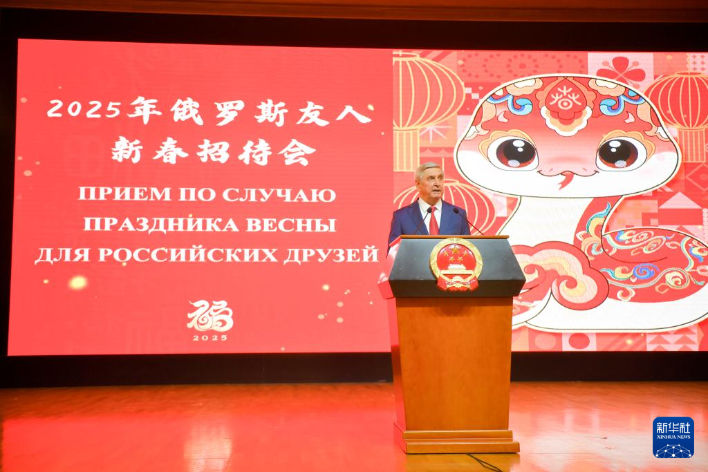 中國駐俄羅斯大使館舉辦2025年俄羅斯友人新春招待會。俄羅斯國家杜馬第一副主席、俄中友好協會主席梅利尼科夫在致辭中說,2024年,俄中政治合作取得新成就,經貿合作繼續發展,人文合作愈加鞏固。他希望在即將到來的蛇年里俄中兩國人士盡其所能,讓俄中關系綻放出新光彩。