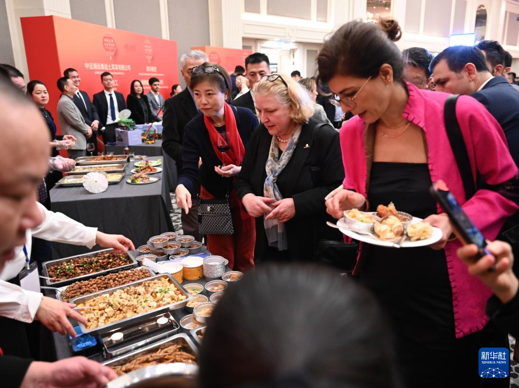 1月19日,在土耳其伊斯坦布爾,來賓在中國駐伊斯坦布爾總領館舉辦的新春招待會上品嘗美食。新華社記者 劉磊 攝
