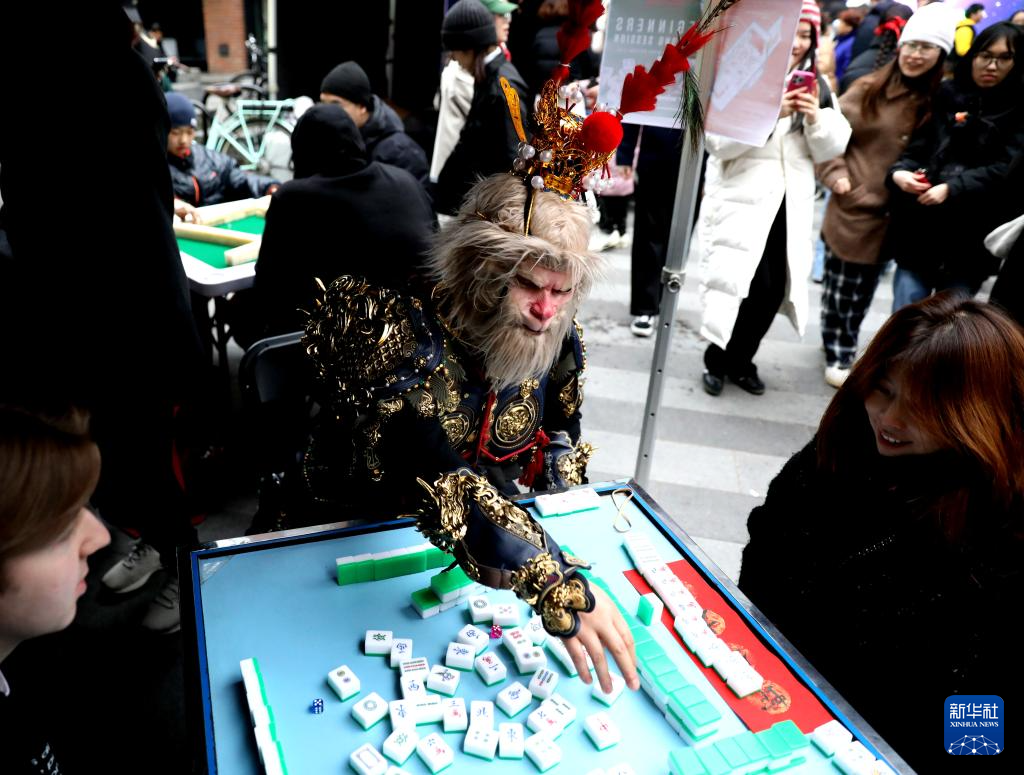今年,倫敦卡姆登集市首次舉辦了中國春節慶典活動。喜慶的春節燈飾高高懸掛,在微風中輕輕搖曳;空氣中彌漫著中式點心的香氣,令人垂涎欲滴。人群中,偶爾可見漢服衣袂翩然掠過,許多人手中還拿著紅色的燈籠和“?!弊?。在慶典活動上,當地市民珍妮·米爾沃德一邊喊著“碰”,一邊開心地將麻將桌上的“南風”牌收到面前。她不僅自己打得得心應手,還不時給身邊的新手講解規則。