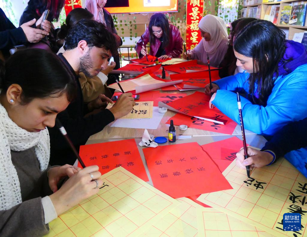 春節期間,突尼斯東方知識書店舉行了春節相關文化活動,參與者通過觀看視頻短片、有獎問答、寫福字等活動了解中國春節常識并親身體會中國年味。突尼斯迦太基大學高等語言學院中文專業學生興致勃勃地演唱了《月亮代表我的心》等中文歌曲。