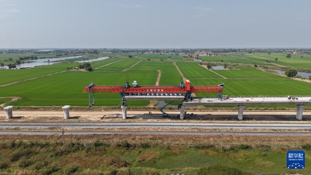 這是1月30日在泰國大城府拍攝的中泰高鐵項目4-3標段施工現場(無人機照片)。新華社記者 孫瑋彤 攝