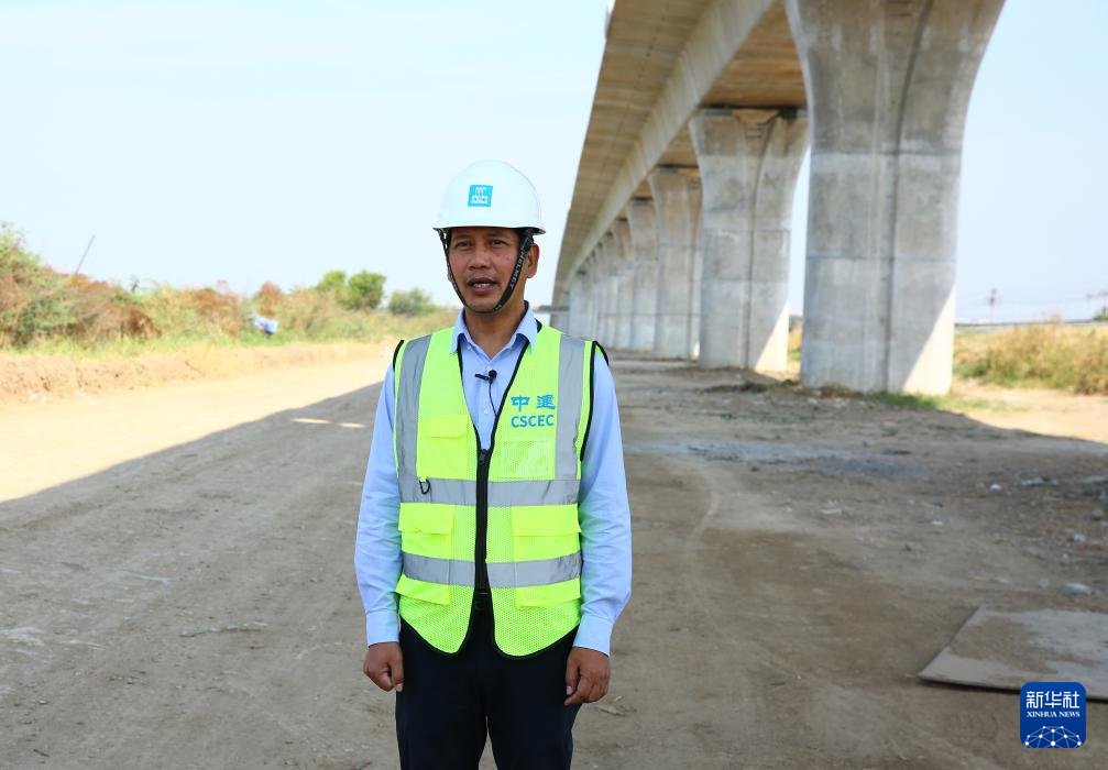 1月30日,在位于泰國中部大城府的中泰高鐵項目4-3標段,泰籍員工杰占·賽深接受新華社記者采訪。新華社記者 孫瑋彤 攝